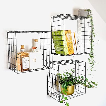 Kimisty Set Of 3 Metal Floating Shelves Decorative Wire Large