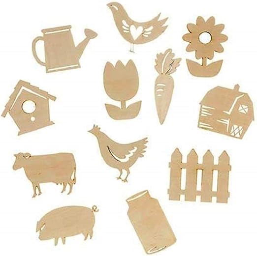 Amazon Com Unfinished Farm Garden Wooden Cutouts Pack Of 12