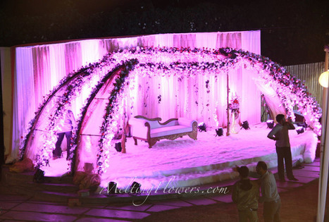 Stage decoration for marriage with flowers. Flowers and lights are most important part of marriage stage decoration. If you are looking for best flower decoration or wedding decorations for your special day look no further. No wedding stage decoration is complete without lovely smelling beautiful and fresh flowers and twinkling light.