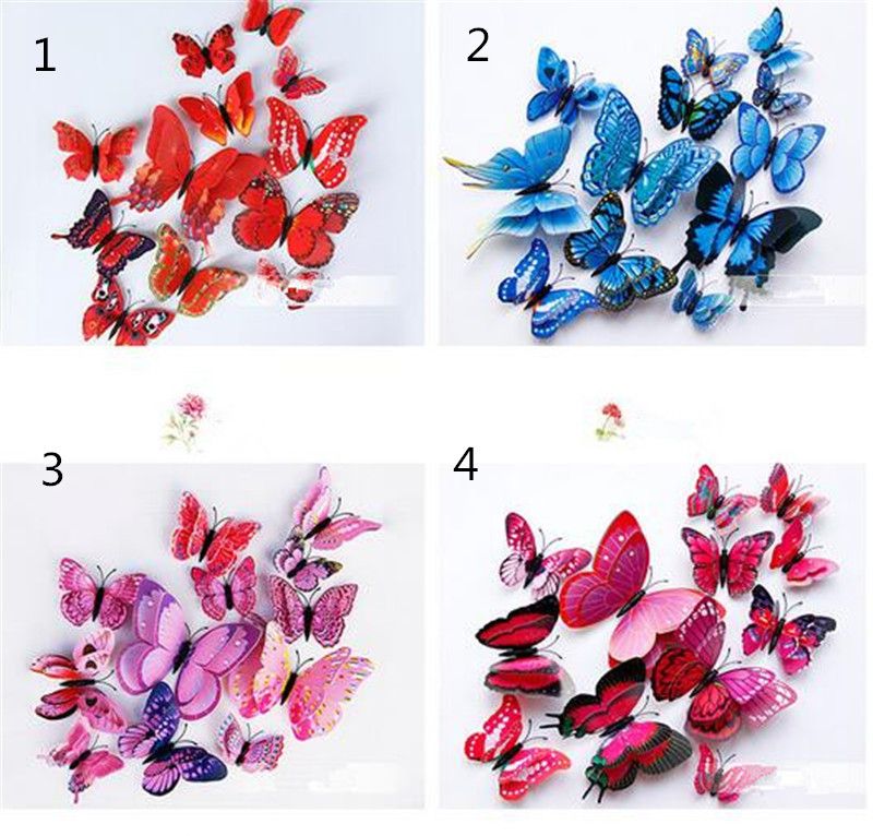 Online Shop 12pcs 3d Double Layer Butterfly Wall Sticker On The