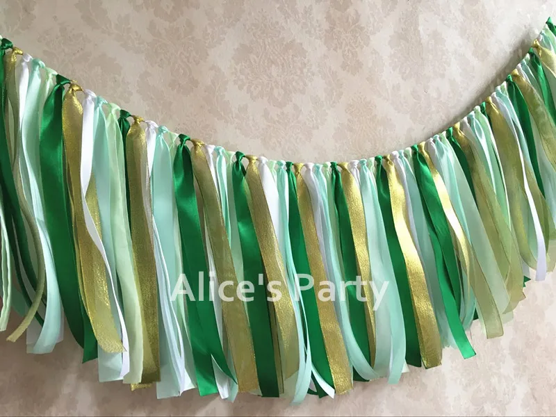 Green And Gold Garland Fabric Rag Garland Party Banner Green