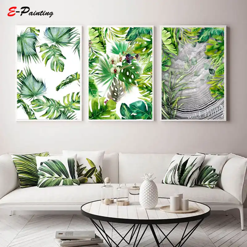 Modern Watercolor Wall Art Painting Jungle Green Leaf Tropical