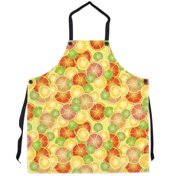 Watercolor Citrus Slices Apron Lemon Yellow Kitchen Decor Etsy