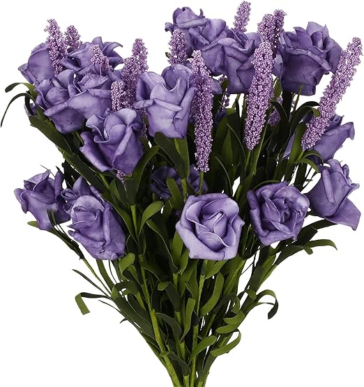Amazon Com Artificial Rose Fake Lavender Purple 6 Heads Soledi