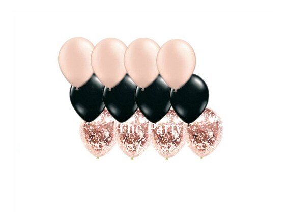 Rose Gold And Black Balloons Rose Gold Confetti Balloons Etsy