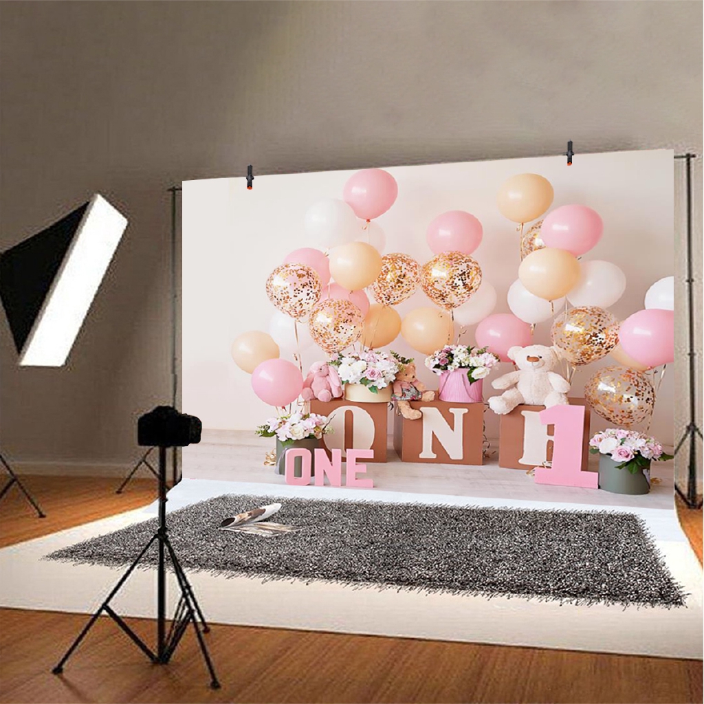 Balloon Bear Backdrop Photography Background Cloth Birthday 1st