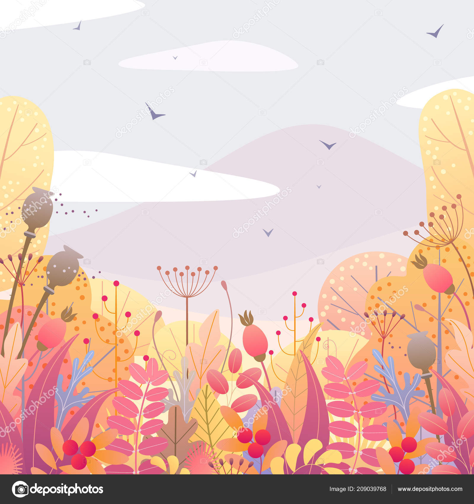 Square Nature Background Trees Colorful Leaves Dried Grass Berries