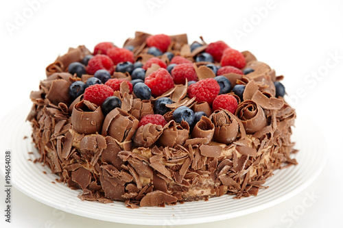 Close Up View Of The Chocolate Cake With Wild Berries And