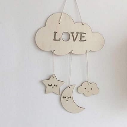 Buy Wooden Moon Stars Wall Hanging Ornaments Novelty Baby Room