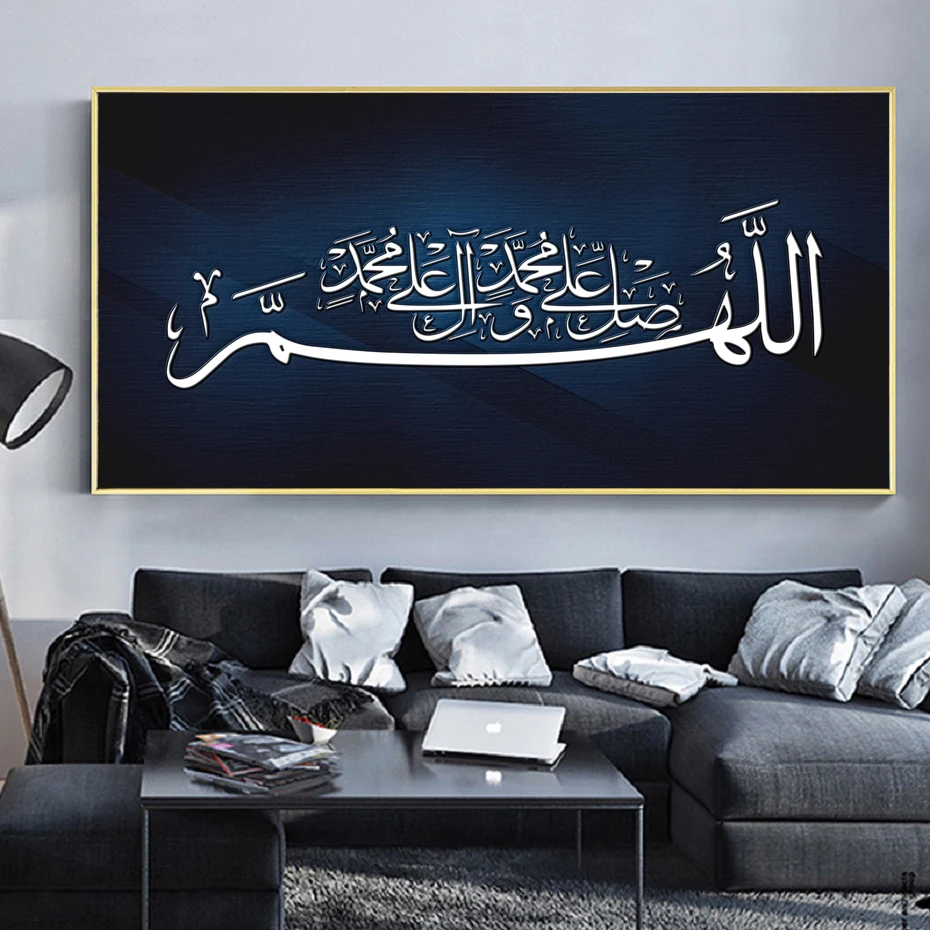 Navy Blue Silver Islamic Calligraphy Wall Art Posters Canvas