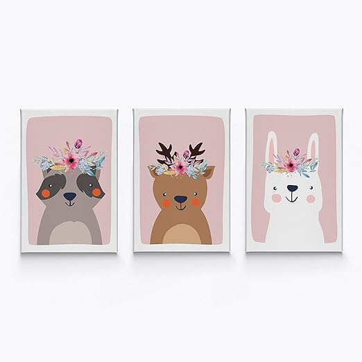 Amazon Com Hb Art Design Raccoon Deer Rabbit Flowers Wall Art