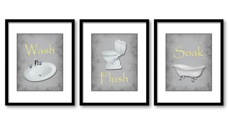 Amazon Com Bathroom Decor Modern Bathroom Art Grey And Yellow