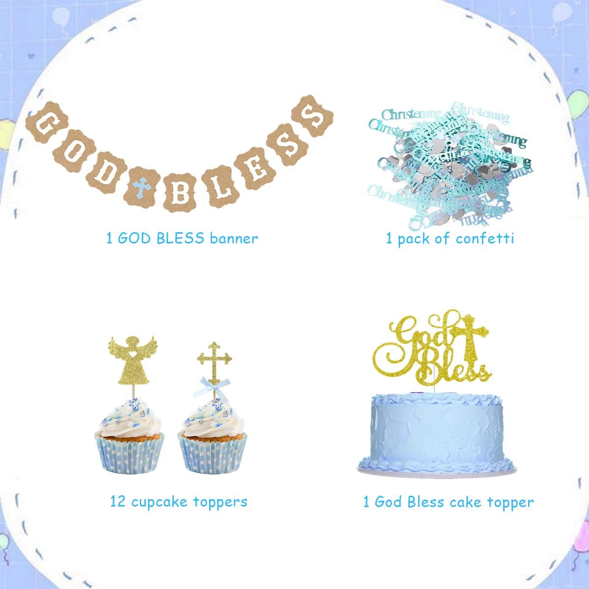 Baptism Decorations For Boys God Bless Banner Cake Topper Cupcake