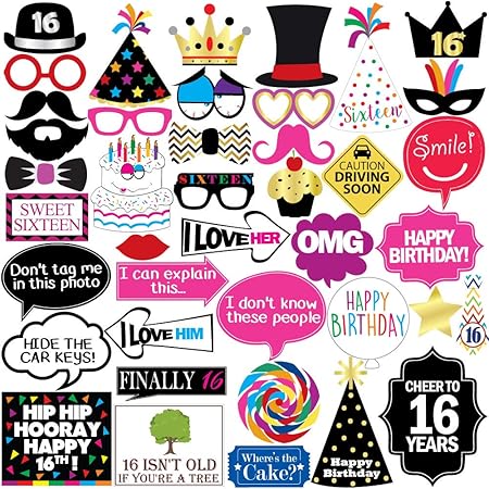 Amazon Com 16th Birthday Photo Booth Party Props 40 Pieces