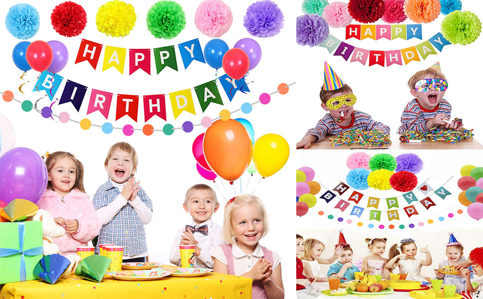 Rainbow Birthday Party Decorations Colorful Birthday Flag Paper