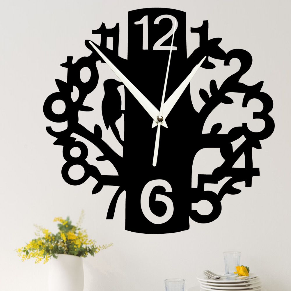 Creative 3d Acrylic Tree And Bird Numbers Mirror Wall Clock Diy