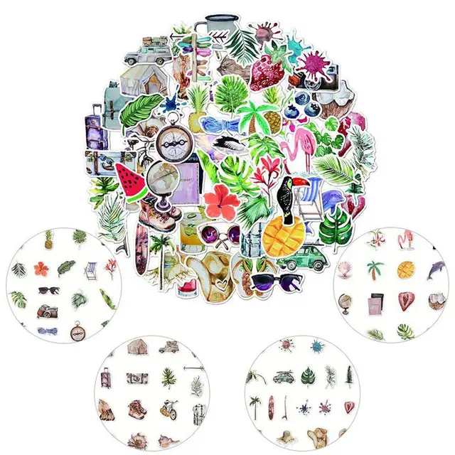 70pcs Set Stationery Stickers Summer Flora And Fauna Sticky Paper