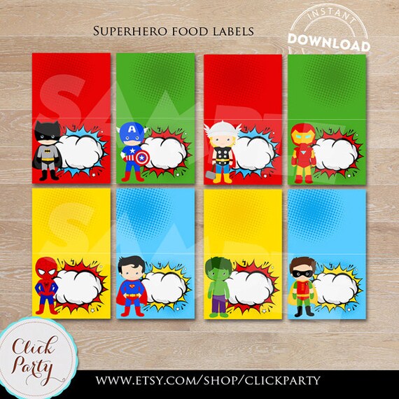 Superhero Food Labels Super Hero Tent Food Printable Etsy